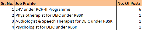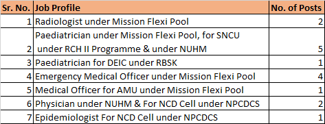 - Post Name: Gynecologist, Pediatrician, Emergency Medical Officer/Medical Officer-MCH/Lady Medical Officers for Labour room, Medical Officer-AMU, Medical Officer (STC) under RNTCP, Medical Officer under NPCDCS, State Leprosy Consultant under NLEP